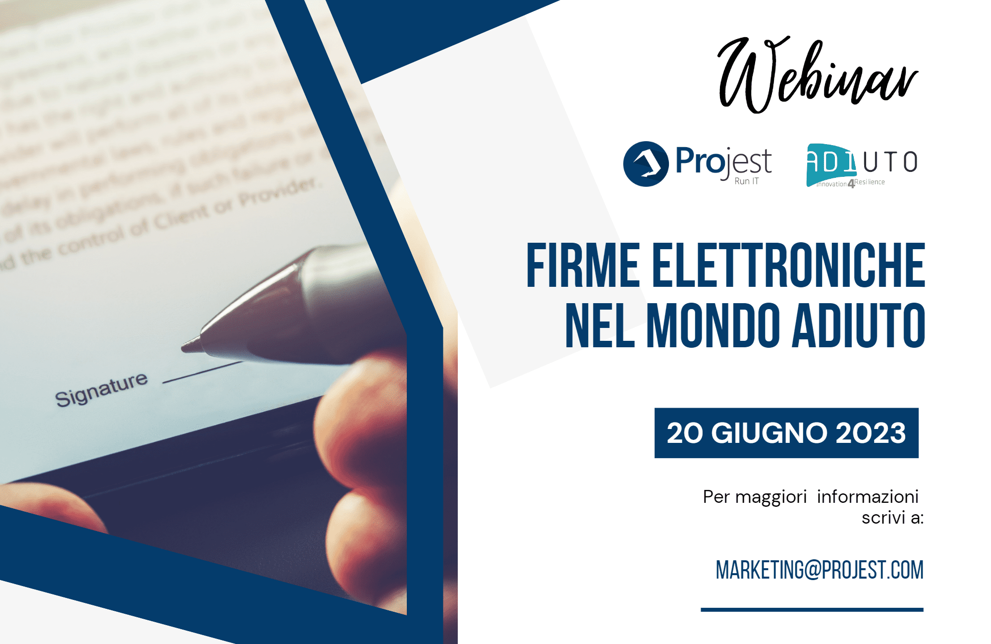 Per approfondire le funzionalità e i vantaggi della Firma Elettronica nel mondo Adiuto e capire come potrebbero supportare concretamente la tua azienda, ti invitiamo ad iscriverti al nostro webinar.