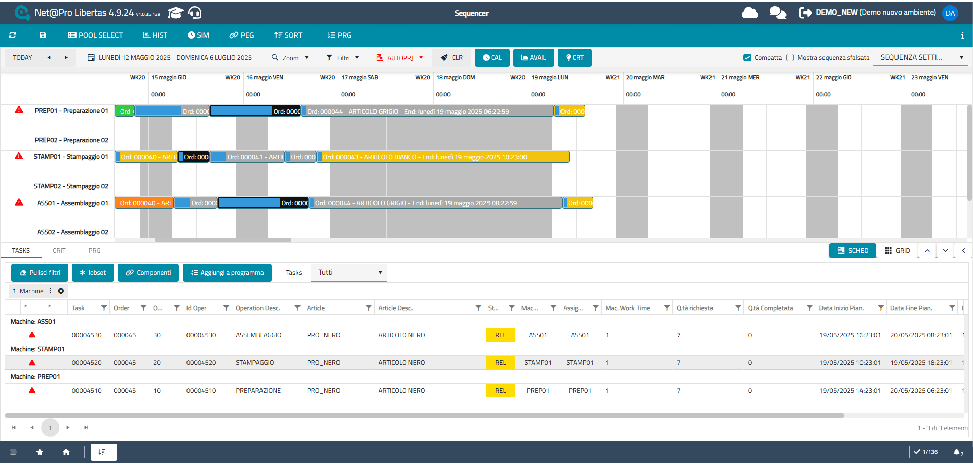 - Schedulazione delle risorse: assegna macchinari e personale in modo efficiente, ottimizzando i carichi di lavoro.